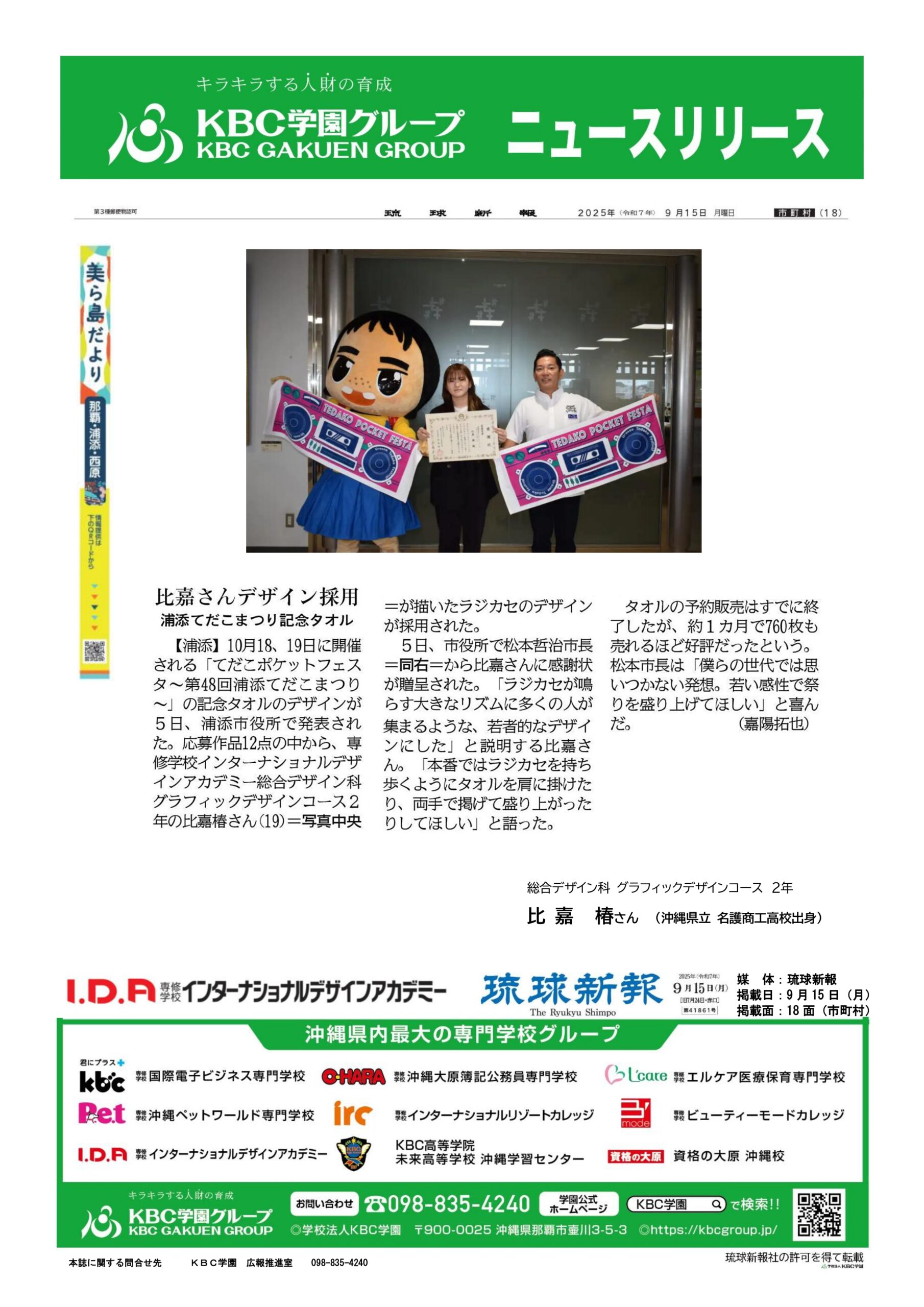 【学生情報】浦添てだこまつり記念タオル デザイン採用!