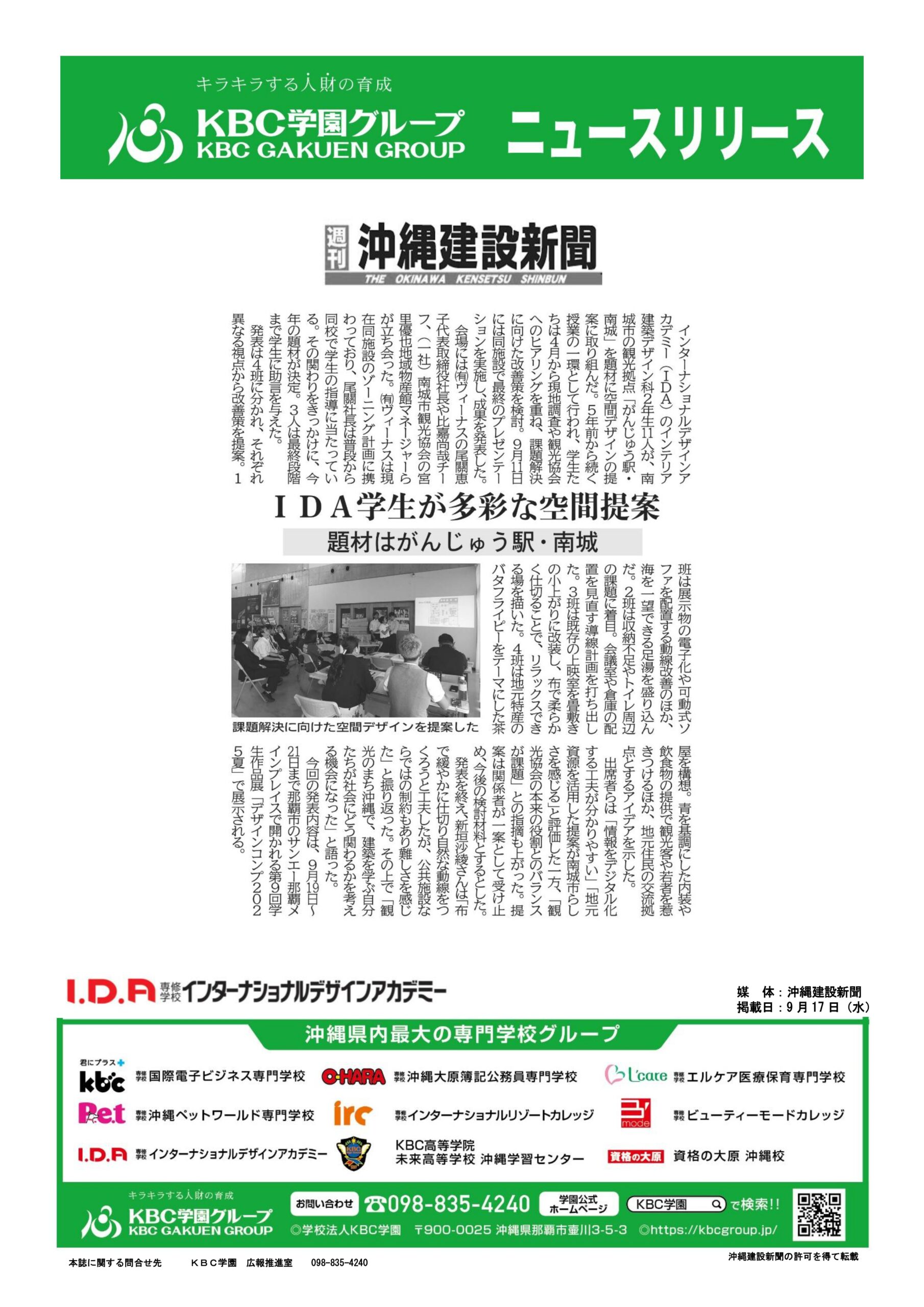 【学校情報】がんじゅう駅・南城を題材にデザインを提案!