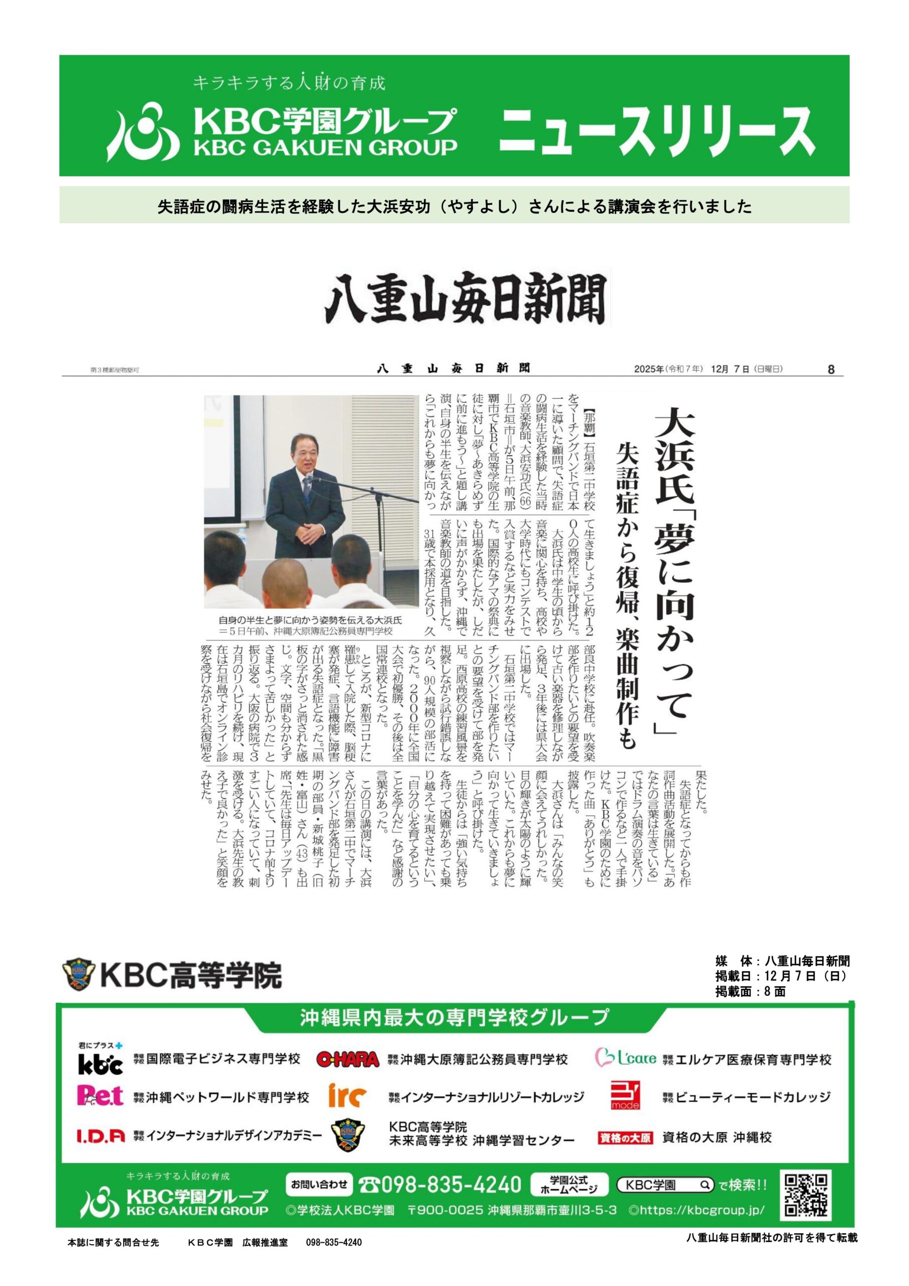 【学校情報】失語症から復帰。大浜安功氏 …