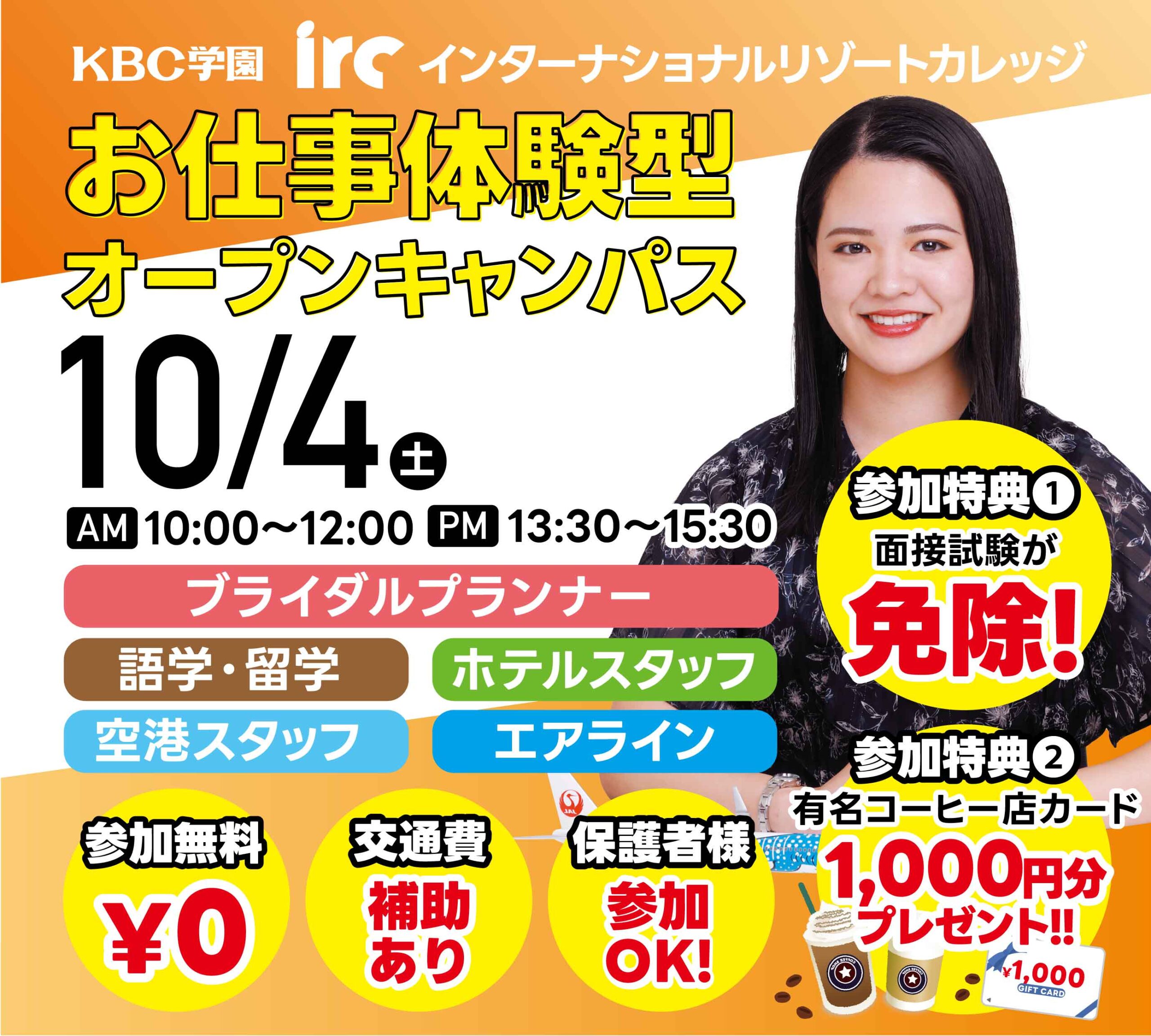 【irc】10/4(土)学生スタッフと体験できるオープンキャンパス♪