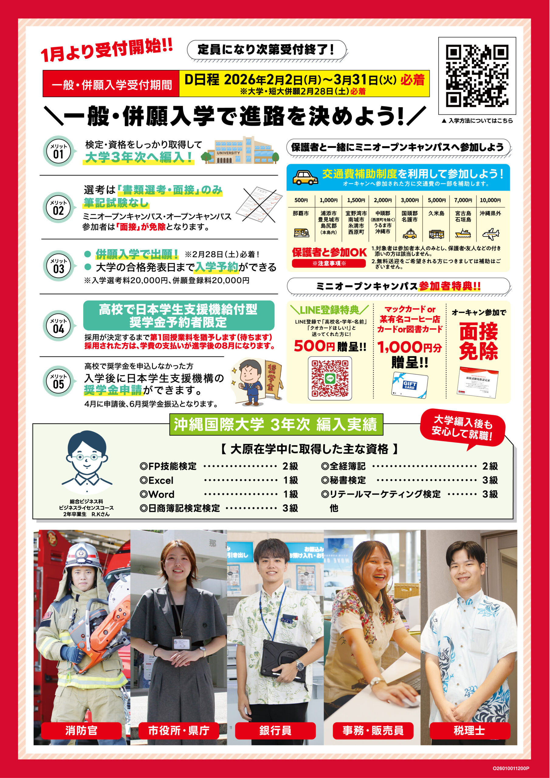 オープンキャンパスへの参加で一般選抜の面接が免除となります。
